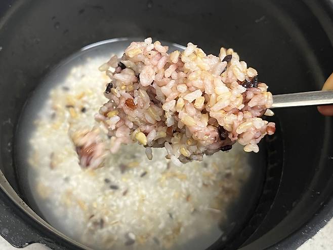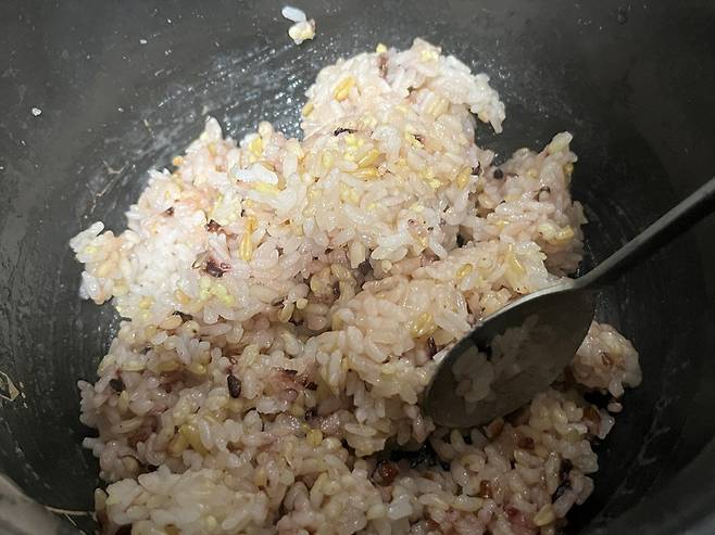 취사가 끝나고 열어보니 식은 밥과 새 밥이 구분이 안 갈 정도로 맛있어 보입니다.
