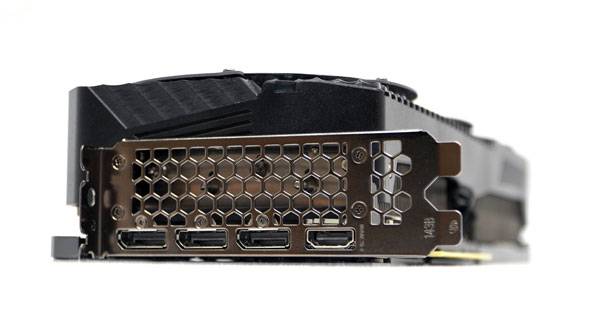 출력포트는 3개의 DP 포트와 1개의 HDMI 포트로 레퍼런스 규격을 따르고 있다. 쿨링 솔루션이 강화된 만큼 두께는 3슬롯을 살짝 넘기는 수준이기 때문에, 그래픽 카드외에 확장 카드를 사용 중이라면 메인보드의 확장슬롯 배치에도 신경 쓸 필요가 있다.