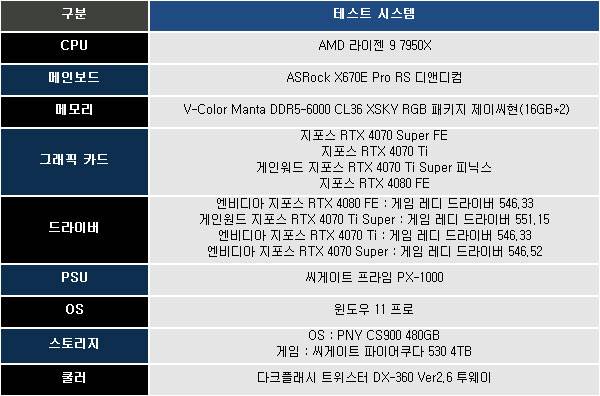 게인워드 지포스 RTX 4070 Ti Super 피닉스 기반 테스트는 위와 같은 환경에서 진행되었다