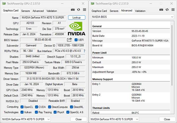 게인워드 지포스 RTX 4070 Ti Super 피닉스의 GPU 코어는 AD103-275-A1으로 확인된다. 전작인 지포스 RTX 4070 Ti에는 GPU가 AD104 기반 코어가 사용된 것과 달리, 확실히 상위 칩이 사용된 것을 알 수 있다.