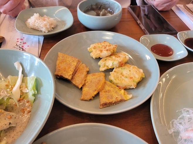 잔치상에 빠질수 없는 전도 좋았다. 육전과 야채전.