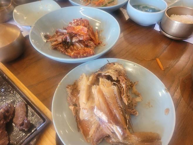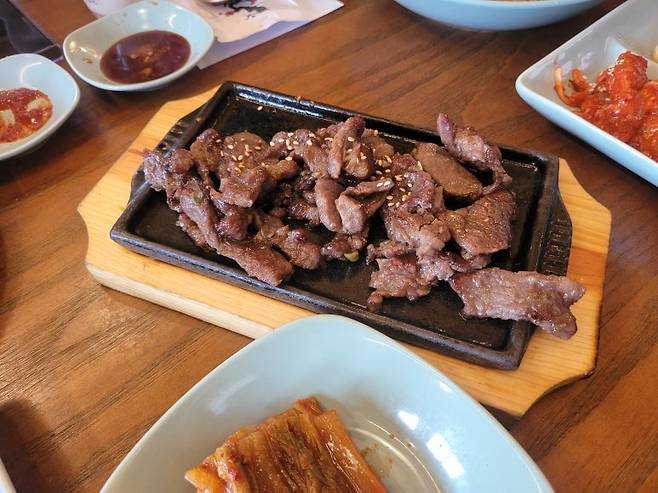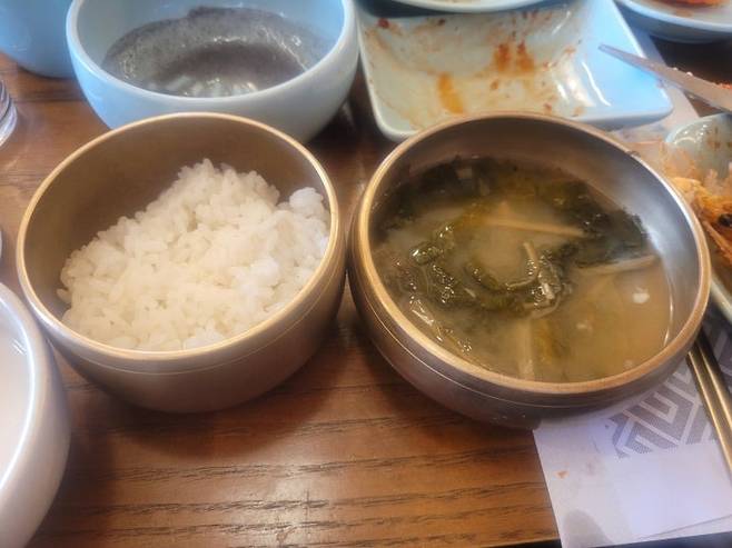 사이드에 나눠먹으라며 찰밥을 조금 놓아주긴 했으나 정식으로 주는 밥이 없다. 이것은 밥을 대신할 쌀막걸리랑 마셔줘야 한다는 뜻인듯하다. 한식엔 걸쭉한 막걸리가 잘 어울린다.
