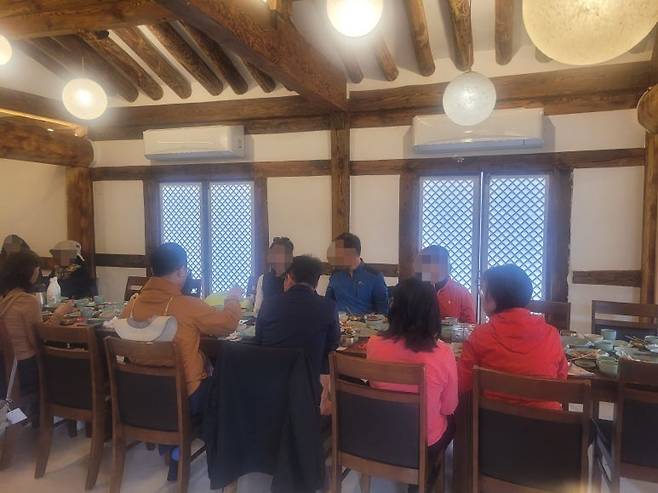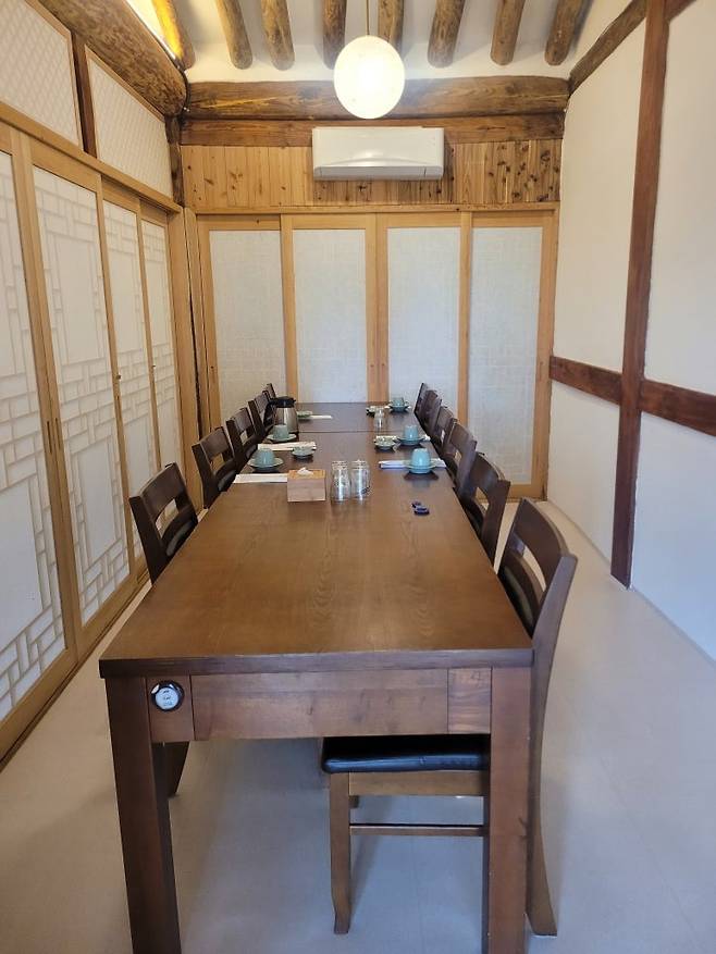 예약된 단체손님들 수에 따라서 방 칸막이를 뺐다 넣었다 조절가능해서, 우리팀은 한 공간에서 식사했다.