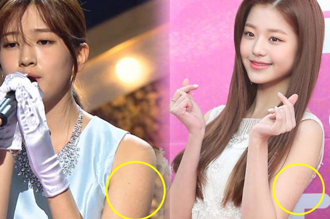 지난해 '복면가왕'에 출연한 그룹 아이즈원의 안유진의 경우, 민소매 원피스 아래로 드러난 팔뚝에서 주사 자국을 볼 수 있었는데요. 그는 2003년생으로, 올해 20살이죠.
