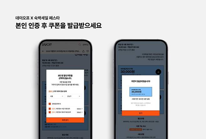 이번 숙박페스타 쿠폰은 한정 수량으로 발급된다. 현재 대형 여행 플랫폼에서는 2만원 쿠폰이 마감되었고, 괜찮은 숙소들은 예약 경쟁이 치열하다. 쿠폰을 아직 받지 못했다면, 데이오프에서 확인하자. 데이오프에서는 아직 2만 원권, 3만 원권 숙박페스타 쿠폰을 발급 수 있다.