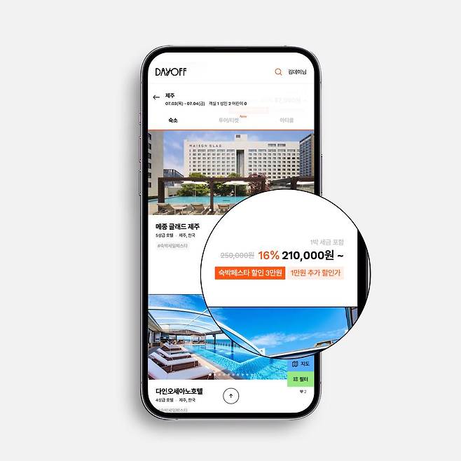 데이오프에서는 신용카드로 결제하면 최대 5만 원을 할인받을 수 있는 단독 프로모션을 진행 중이다. 숙박세일 페스타 쿠폰 혜택과 중복으로도 적용받을 수 있다. 즉, 숙박세일 페스타 3만 원 쿠폰과 신용카드 5만 원 할인을 받으면 최대 8만 원 할인받을 수 있으니 쏠쏠한 혜택이다.