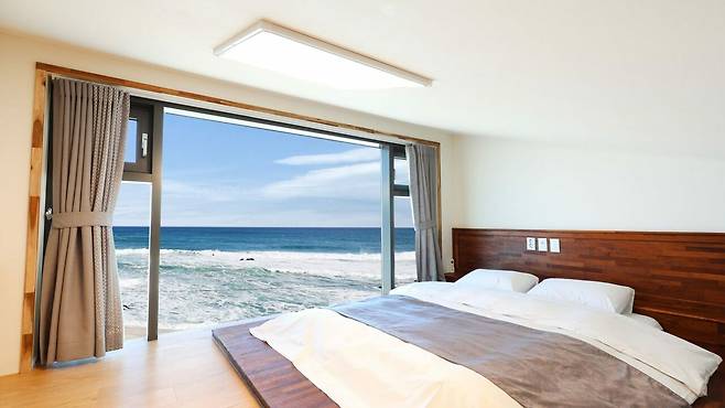 소돌23풀빌라는 주문진 소돌항에 위치한 강릉 풀빌라다. 21년에 오픈해 깔끔한 시설과 모던한 인테리어가 특징이다. 전 객실 통창 오션뷰로 탁 트인 전망을 감상할 수 있다. 특히, P202 객실에는 개별 수영장이 있고 15시~21시 동안 이용할 수 있다. 연박을 한다면 아침부터 이용도 가능하다. 소돌23풀빌라 수영장을 미온수로 이용하고 싶다면, 체크인 하루 전 사전문의를 해야한다.