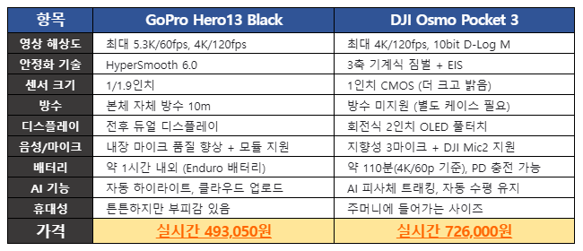 고프로 VS DJI 오즈모, 차이점은?