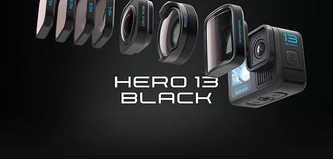 히어로13 블랙은 고프로의 최신 플래그십 모델로, 고프로 최초의 렌즈 교환식 액션캠이다. 접사 렌즈, 초광각 렌즈, 모션 블러 렌즈, 애너모픽 렌즈 등 다양한 렌즈 모듈을 교체하면서 새로운 방식의 촬영을 경험해볼 수 있다는 것이 매력적인 제품. 최대 5.3K 해상도를 지원하고 400fps 연사 슬로모션 기능을 탑재해 고해상도 슬로모션 비디오를 찍을 수 있으며, 강력한 HDR 카메라 기술로 어둡거나 빛이 강한 환경에서도 선명한 화질을 제공한다.