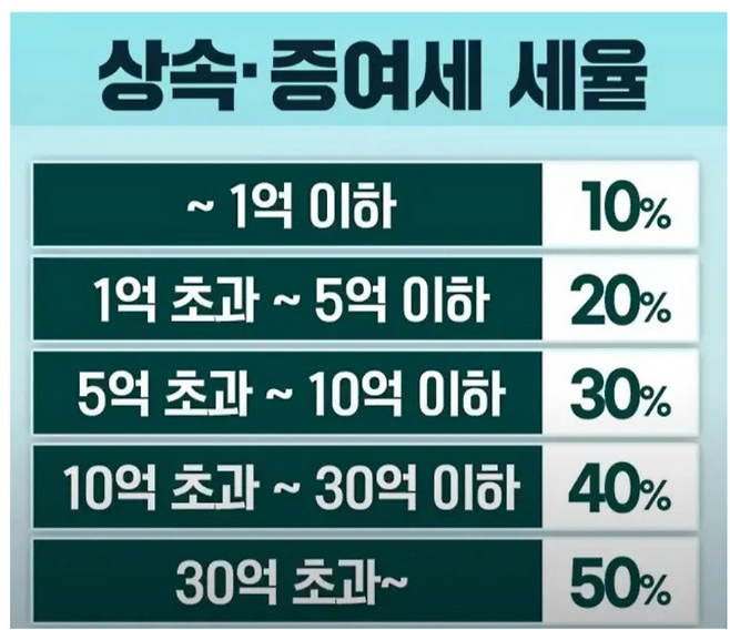✅ 예시:사망자의 순재산이 10억 원→ 공제 후 4억 원에 대해 최대 50% 누진세율 적용