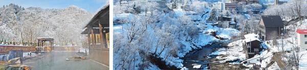 산속에 있다시피 해 일본 애니메이션에 나오는 듯한 온천의 느낌을 내는 마을입니다. 무료 족욕탕도 마을 곳곳에서 볼 수 있으며 시기만 맞춘다면 조잔케이 신사에서 열리는 야간 스노우 캔들 이벤트도 만나 볼 수 있습니다.