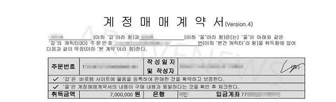 사이트 거래를 할 때 가장 중요한 것이 전자계약서입니다. 소액인 경우 굳이 계약서를 따로 작성하지 않아도 리스크가 적지만, 최근 모바일 게임 시장에서는 수백만원, 수천만원 심지어 억 단위까지 계정 거래가 이뤄지기 때문에 계약서는 필수라고 볼 수 있습니다.