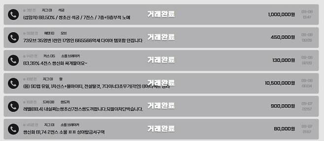 1. 판매 항목에 올라온 거래 물품 정보 및 가격 확인