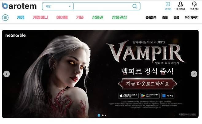모바일 게임 계정 & 아이템 거래 대표 사이트 바로템 관심