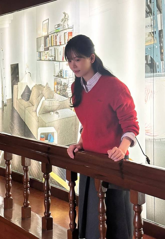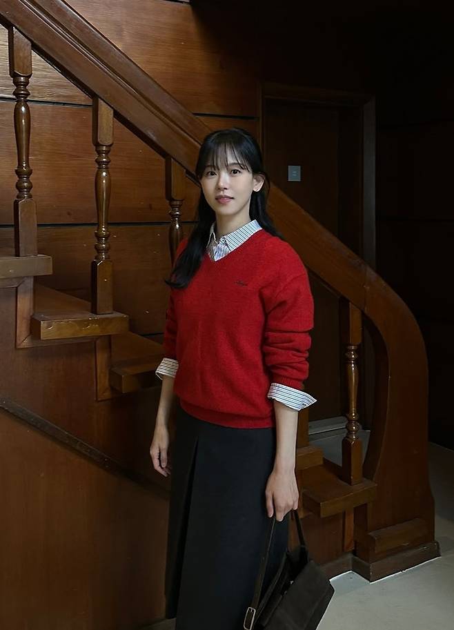 배우 강한나가 샛빨간 니트 스웨터의 간절기룩으로 강렬하면서도 청순한 단아미를 발산했다.