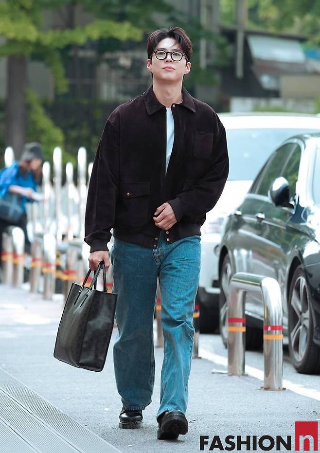 배우 박보검이 봄버 재킷과 데님 팬츠를 매치한 댄디룩으로 출근길을 밝혔다.
