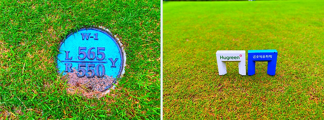 티잉그라운드에 별도의 코스 안내판은 없으나 그린 중앙까지 거리가 표시되어 있고, 티 마커는 모든 홀에 적용된 것은 아니나 몇몇 홀은 금호석유화학이 쓰여 있는 티 마커를 사용 중입니다.