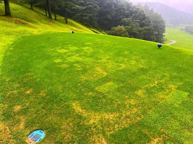이날 플레이한 아시아나 cc의 그린은 그린 보수가 잘 되어있어 상태가 양호한 편이었습니다. 비가 내려서인지 그린은 홀마다 차이가 거의 없을 정도로 볼을 잘 받아주는 편이었고, 보수기가 필요할 정도로 피치 마크가 크게 생기는 편이었습니다.