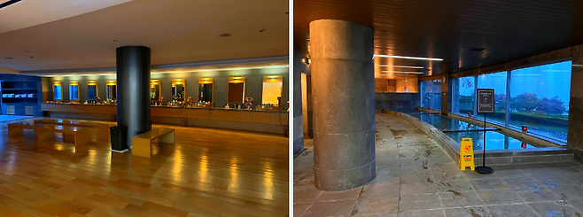 1부였다 보니 남자 사우나 사진을 남길 수 있었는데, 탕에서도 외부를 볼 수 있게 해두었고 사우나에는 샴푸, 바디 샴푸만 준비되어 있습니다.