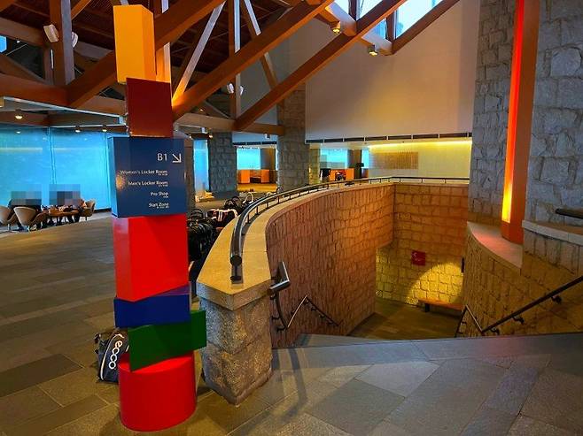 클럽하우스 내부에 들어와서 체크인을 하고 나면 대식당은 1층에 있고, 라커룸과 프로숍, 그리고 스타트 지점은 지하로 내려가셔야 합니다.