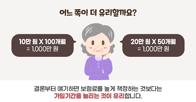 추후납부 보험료로 쓸 수 있는 예산이 한정되어 있다면, 가입기간을 늘리는 것이 유리할까요, 보험료를 상향하는 것이 유리할까요?