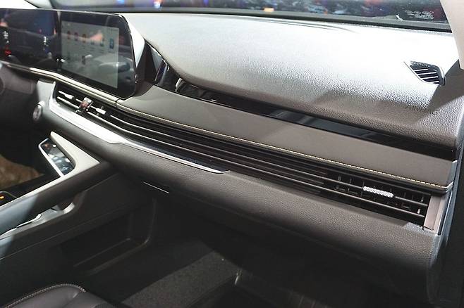 내부에는 7인치 대시보드 화면과 12.3인치 멀티미디어 시스템 터치스크린이 장착되어 있으며, 중앙 터치스크린은 빠른 반응 속도를 자랑한다. 센터 콘솔은 간결한 디자인으로, 무선 충전기와 작은 토글스위치형 기어 선택기가 포함되어 있다. 앞 좌석은 가죽 트림, 전동 조절 기능이 제공되지만 뒷좌석은 인조 가죽이 사용되었다.