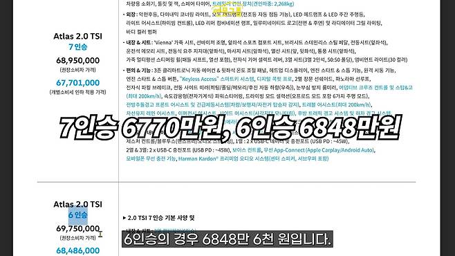 폭스바겐 대형 SUV 아틀라스가 드디어 국내에 출시되었어요. 이 차는 국내에서 현대 팰리세이드와 경쟁하는 모델이라고 볼 수 있는데요. 출시 전에는 미국 생산 차량이라 미국 가격, R-라인 기준으로 53,205달러를 참고해서 우려가 좀 있었죠. 당시 환율 1,368원을 적용하면 약 7,282만 7천 원, 그러니까 거의 7,300만 원에 가까운 가격이 예상되었거든요. 그런데 공식 가격은 예상보다 정말 잘 나왔습니다.