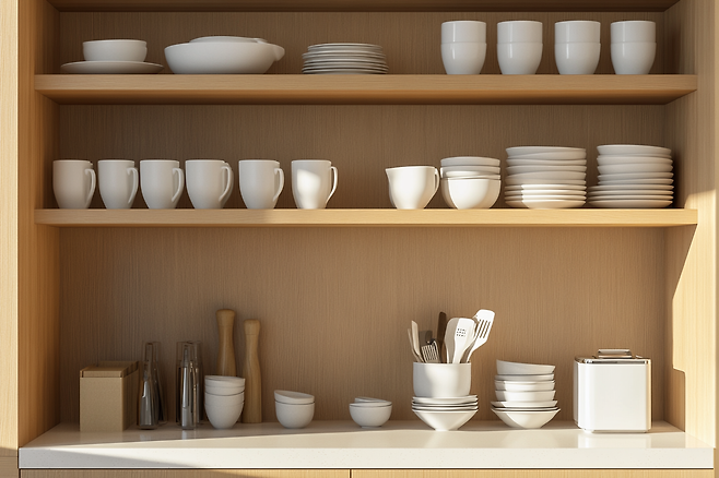 컵, 접시, 수저 등이 필요한 양보다 많이 있을 때 공간 낭비가 생깁니다.