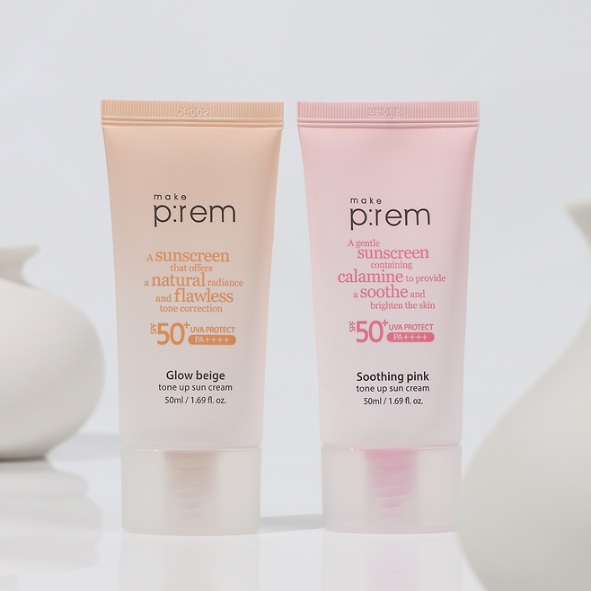 선크림만으로 화사한 피부를 연출하고 싶다면? 취향대로 골라 쓰는 메이크프렘 톤업 선크림 2종을 소개해요. #결광톤업 '글로우 베이지 톤업 선크림' 수분 가득한 텍스처가 촉촉하게 발리면서 맑고 투명한 광채가 올라오는데요. 내추럴 베이지 컬러로 자연스럽게 보정돼 타고난 듯 매끄러운 피부 결을 연출할 수 있어요. #생기톤업 '수딩 핑크 톤업 선크림' 부드러운 핑크빛 텍스처가 얇게 발리면서 마무리감은 보송한데요. 선케어와 동시에 피부 톤을 한층 밝혀 보정한 듯 맑고 화사한 피부 톤을 표현할 수 있어요. 피부 결이 예뻐 보이는 글로우 톤업 VS 피부 톤이 화사해 보이는 핑크 톤업 이젠 선크림도 피부 타입, 취향에 따라 골라서 사용해 보세요.