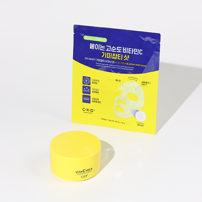피부 톤을 칙칙하게 만드는 기미, 잡티 그리고 흔적*까지 이제 CKD의 비타씨테카 2종으로 붙여서 케어해 보세요. 병풀 추출물과 센텔라아시아티카에서 추출한 4가지 고순도 테카 성분과 해면동물에서 추출한 하이드롤라이즈해면이 만나 만들어진 시카테카샷이 유효성분의 흡수를 돕고 피부 결을 건강하게 케어해 주는데요. 피부 톤을 개선해 주는 순도 99& 비타민C와 비타민C 유도체 5종 성분이 흔적 고민까지 해결해 주죠. 얼굴 전체 케어엔 비타씨테카 기미잡티샷 마스크를, 흔적부위 집중 케어엔 비타씨테카 트리플 흔적 패치를 사용해 효과적인 톤케어 시작해 보세요!