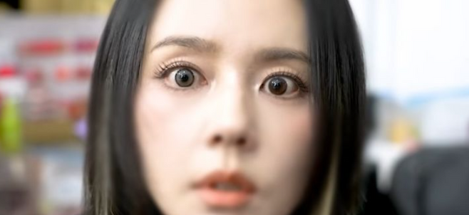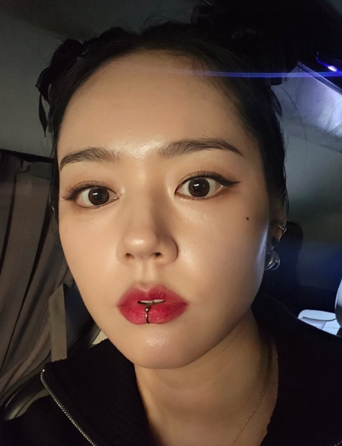 그녀의 트레이드마크인 맑은 눈망울은 신비로운 컬러 렌즈로 채워졌고, 헤어피스를 더해 완벽한 아이돌 스타일을 완성했습니다. 특히 시선을 사로잡은 것은 바로 도톰한 오버립과 입술 피어싱(페이크)이었습니다.