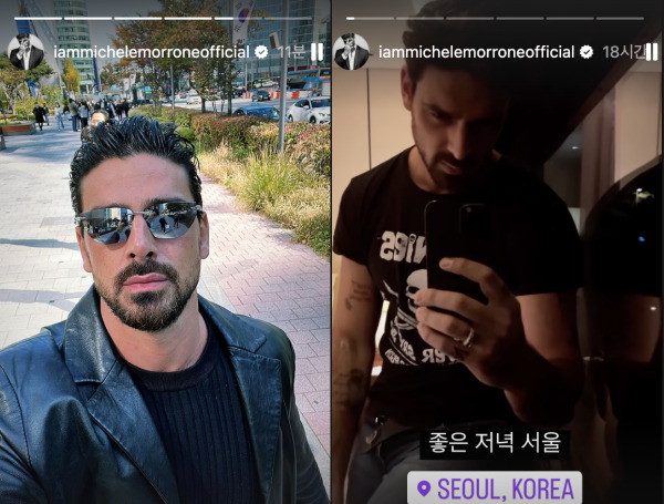 그런 그가 현재 한국, 그것도 서울에 있었던 것이 밝혀져 화제이다. 미켈레 모로네는 개인 SNS를 통해 '좋은 저녁 서울'이라며 한 호텔에서 야경과 함께 있는 모습을 공개 했고, 서울 길거리와 코엑스 별마당 도서관 등에서 있는 모습 또한 올렸다.