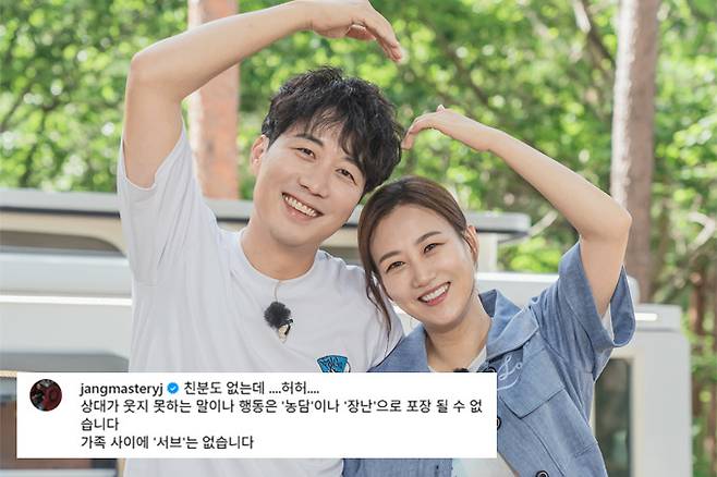 장윤정은 SNS에 “가족 간에 서브는 없다. 상대가 웃지 못할 발언은 농담이 될 수 없다”는 글을 올리며 불쾌감을 드러냈다.