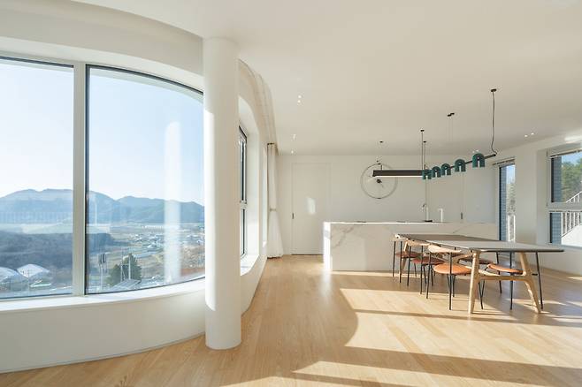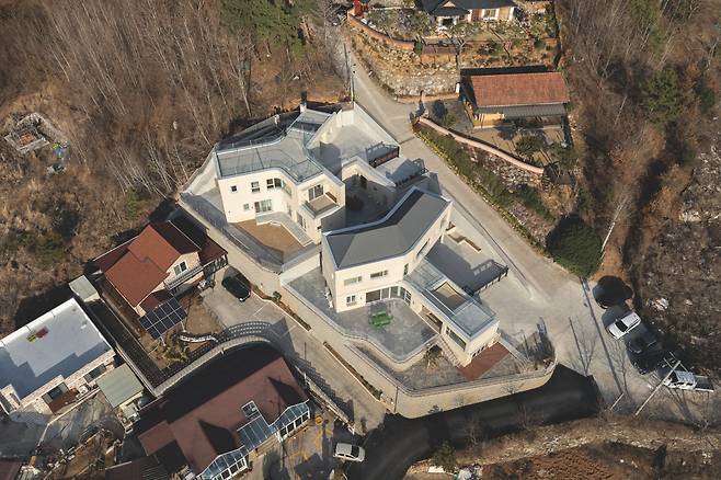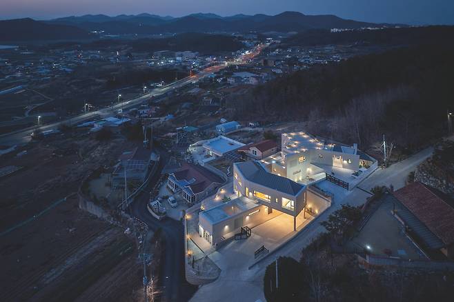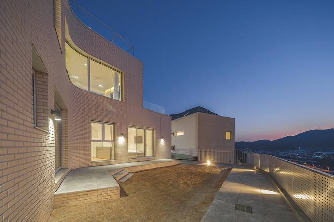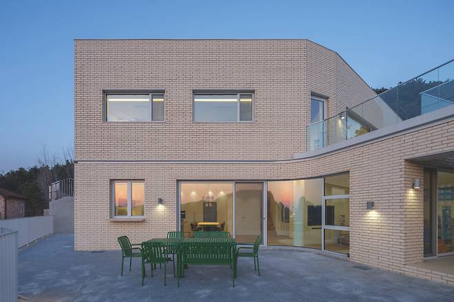 여수시 관기리의 높은 지대에 자리한 두 채의 단독주택은 바다를 조망하는 탁월한 입지를 갖춘 공간이다. 이 프로젝트는 부모님과 아들 내외, 두 세대가 함께하지만 독립적인 생활을 영위할 수 있도록 각각의 부지에 설계됐다. 경사도가 가파른 부지의 특성상 토목공사의 난이도가 높아 이러한 어려움을 극복하면서 경사 부지의 장점을 최대한 살리도록 두 집을 배치했다.