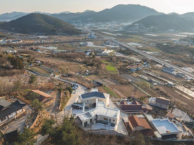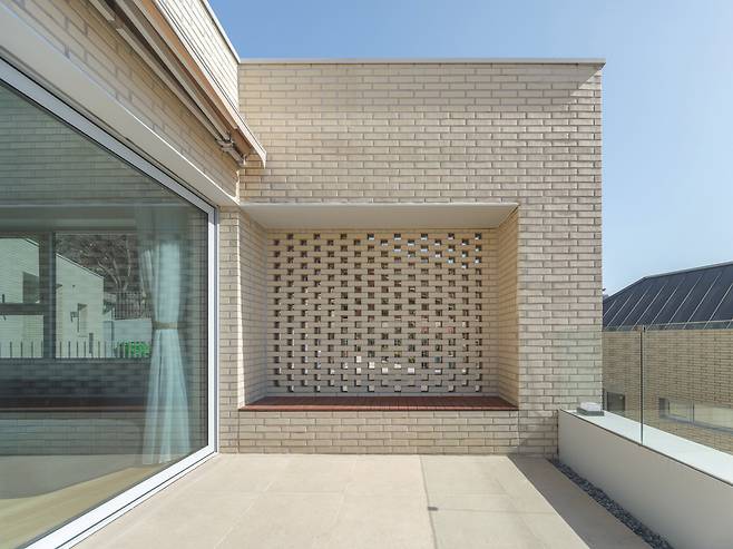 1층 현관으로 들어서기 전 우측에는 별도의 작은 공간이 자리하고 있다. 이 공간은 건축주의 요구사항 중 하나였던 황토 온돌방이다. 건축주는 이 공간을 개인적인 용도뿐만 아니라 마을 사람들과 함께 이용할 수 있는 사랑방으로 활용하기를 원했다. 이에 따라 주택과 분리하면서도 집주인이 쉽게 접근할 수 있도록 계획해 단순한 주거공간을 넘어 공동체적 가치를 담은 장소로 완성했다.