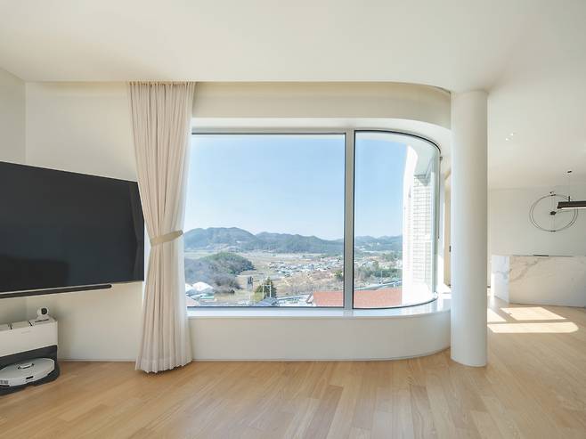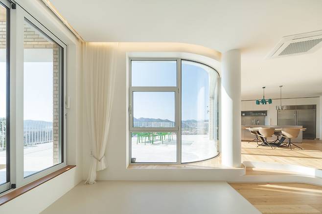 부메랑 형태 매스로 입체적 미감 형성