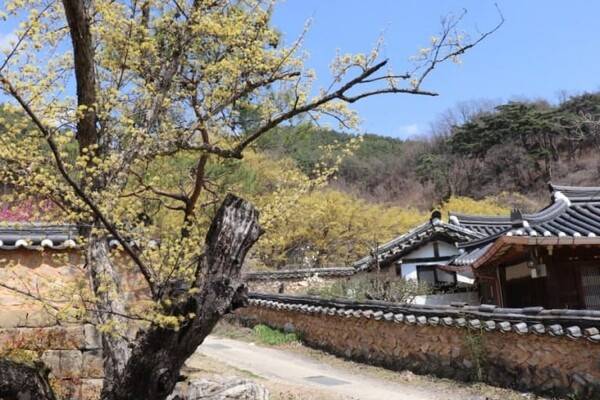 5월에는 산수유꽃이 지고 초록빛이 마을을 감싸지만, 고풍스러운 한옥과 돌담길, 그리고 조용한 산책길이 어우러져 여유로운 시간을 보내기에 딱 좋습니다. 마을 인근에는 다큐멘터리 영화 ‘워낭소리’의 촬영지로도 잘 알려져 있어요.