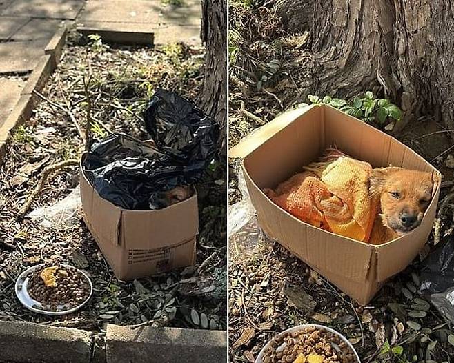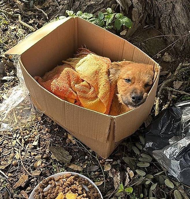 실제로 박스는 뚜껑까지 닫힌 채 버려져 있었고 그 안에는 고작 4~5개월 된 갈색 강아지가 가만히 웅크리고 있는 것이 아니겠습니까.