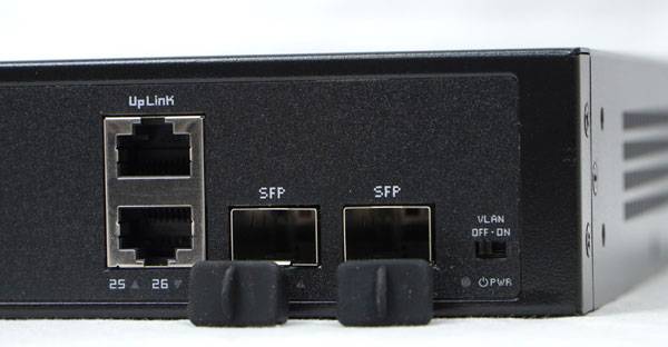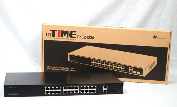 ipTIME PoE24004는 외부 서비스 회선 연결을 위한 업링크용 기가비트 RJ45 포트 2개, SFP 포트도 2개나 제공된다. SFP 포트는 UTP 케이블이 지원하는 최대 거리인 100m를 초과하는 원거리에서 추가 확장 모듈과 광케이블을 이용해 백본장비나 다른 SFP지원 스위치와 연결해 네트워크를 구성할 수 있다.