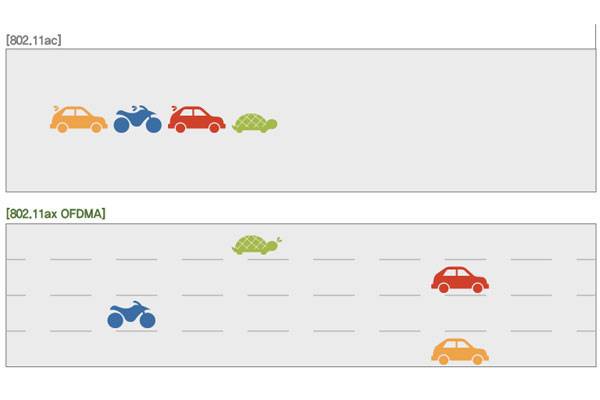 네트워크를 효과적으로 사용할 수 있도록 OFDMA(Orthogonal Frequency Division Multiple Access) 기술과 MU-MIMO(Multi User-MIMO) 기능 역시 지원하는데, OFDMA는 기존 채널에서 4배 많은 서브 채널로 정보 패킷을 전송해 느릿 패킷이 전체통신속도에 영향을 끼치지 못하게 만들며, MU-MIMO는 다수의 기기가 연결된 상황에서도 속도 저하 없이 최대 속도로 와이파이를 사용할 수 있게 만든다.