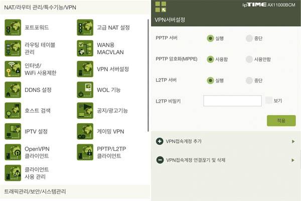 ipTIME AX11000는 OpenVPN 기능 뿐만 아니라 PPTP, L2TP 클라이언트를 지원하여 공유기의 네트워크를 원하는 지역에 위치시킬 수 있다. 이를 통해 사용자는 해외 서버에서만 사용할 수 있는 특정 콘솔 게임이나 온라인 게임을 국내에서 사용할 수 있게 되며, 국가 제한이 있는 서비스도 제약없이 사용할 수 있다.