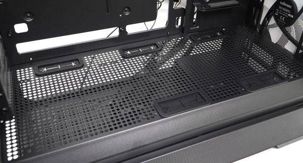 하단 PSU 장착부와 기타 시스템 장착부의를 구분짓는 파티션은 케이블 관통을 위한 홀이 다섯 곳에 배치되어 있으며, 케이블 손상 방지용 고무 재질 보호 프레임이 덧대어져 있다. 3개의 120mm 또는 2개의 140mm 쿨링팬을 더해 냉각 성능을 강화할 수 있다.