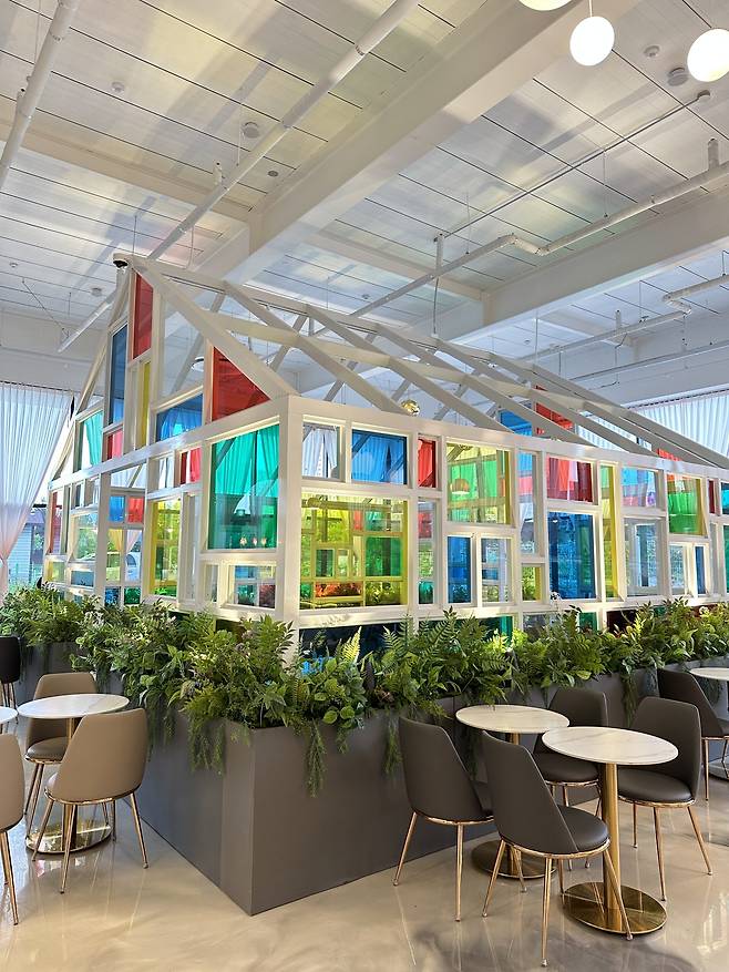 온더플로우의 문을 열고 들어서면 가장 먼저, 높은 층고에서 뻗어나오는 개방감이 방문객들을 맞아줘요. 밝고 쾌적한 조명에 화이트와 우드 톤이 어우러진 인테리어가 어지간한 스튜디오 못지않게 세련된 분위기를 선사하죠. 큰 창문을 통해 들어오는 자연광이 공간을 더욱 포근하게 감싸주니, 앉아 있기만 해도 마음이 편안해지는 기분이 들어요. 여러 포토존이 마련되어 있어 SNS 인증샷을 찍기에도 좋답니다.