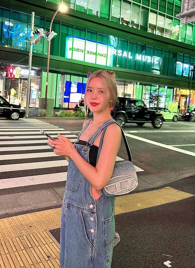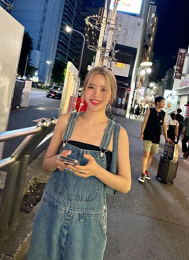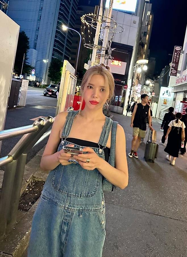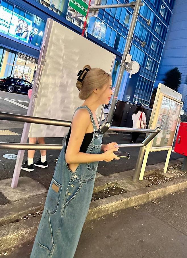 그룹 마마무의 솔라가 데님 오버롤 섬머룩으로 도쿄 밤거리 외출을 즐겼다.