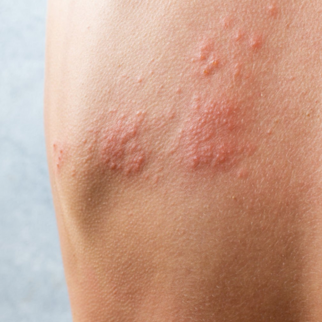 통증이 시작되고 며칠이 지나면 해당 부위에 붉은 발진이 나타납니다. 이어서 작은 물집이 무리 지어 생기며 점차 번지는데, 이때부터는 눈으로도 대상포진을 확실히 구분할 수 있습니다.