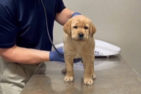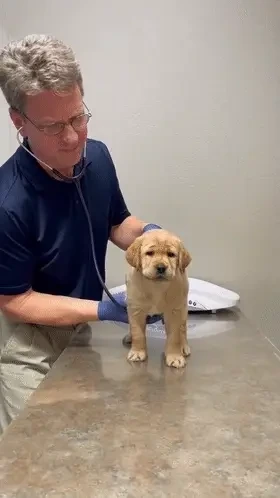 생애 첫 동물병원을 찾은 래브라도 리트리버 아기의 얼굴에는 온통 혼란스러움이 가득했습니다.