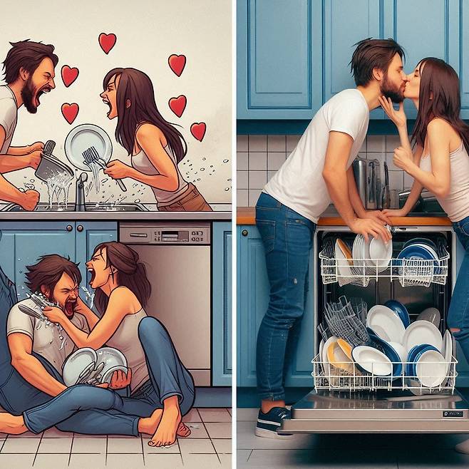 "우리 식기세척기 꼭 사야 해?" 예비 신랑이 진지하게 물었습니다. 저는 눈을 가늘게 뜨고 그를 바라보았습니다.