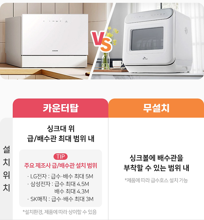 "빌트인으로 할까? 프리스탠딩? 아니면 카운터탑? 무설치?"