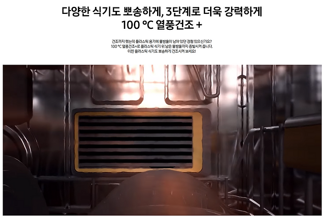 위생 면에서는 삼성 100°C 직수 살균이 인상적이었어요. 삼성 식기세척기의 직수 살균은 100°C로 직접 끓인 물을 사용해 살균 세척하는 방식이에요. 물탱크나 배관에 잔여물이 남지 않고, 매번 새로운 물을 끓여서 사용하므로 위생적이라고 합니다.