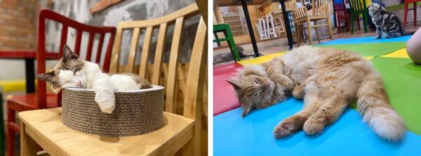 키오스크에서부터 고양이를 발견할 수 있으며, 수많은 종의 고양이들이 유기묘라는 것이 안 믿기듯 사랑을 듬뿍 받은 느낌을 받을 수 있는 곳입니다.